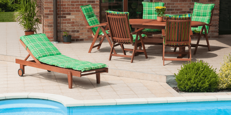 The pool deck usually has an assortment of furniture. Depending on the size of your deck and what you are planning to use the area for you may choose to add – tables, chairs, lounges, banana beds and other pool and backyard furniture.
